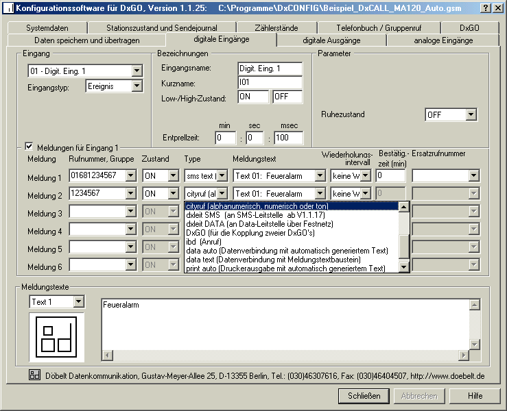 Unter der Registerkarte digitale EIngänge können Sie auch die Art der Meldung wählen. Im Falle einer