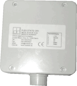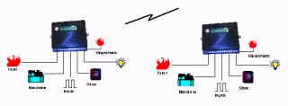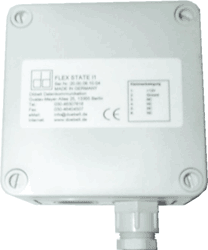 BeschreibungFLEX stellt eine drahtlose Übertragung von Signalen, Daten und Sprache über eine Entfernung von bis zu 300m zur Verfügung. Der Datenaustausch zwischen den FLEX-Stationen erfolgt per genehmigungs- und kostenfreier Funkverbindung. Als Standard-Anwendung wird die Punkt-zu-Punkt Übertragung zwischen zwei FLEX Geräten realisiert. Eingangssignale des einen Gerätes werden als Ausgangssignale auf dem zweiten Gerät wieder ausgegeben. Eine Mischung von Ein- und Ausgängen ist ebenfalls möglich. Neben der Signalübertragung können auch bidirektionale Übertragungsstrecken für Sprache und Daten realisiert werden. Mit FLEX können Sie ein verteiltes Ereignismelde- und Fernwirksystem realisieren. Die Stationen können in einem Umkreis von 300m verteilt angeordnet werden. Eine Station dient als Master. Von dort aus werden die Informationen mit den außen liegenden Stationen ausgetauscht. Es können bis zu 16 Funk-Stationen mit gleichem Funktionsumfang in einem Funknetz kosten-günstig ohne Kabelverlegungsarbeiten zusammen geschaltet werden. Es stehen an jeder FLEX STATE Funkklemme bis zu 16 digitale Eingänge in Form von poten-tial-freien Eingängen und 16 digitale Ausgänge als open-Collektor-Ausgänge oder als Option, in Form von Relaisausgängen, zur Verfügung. Signale bis zu einer Frequenz von 10 Hz können erfaßt und übertragen werden. Einstellungen an den FLEX-Klemmen müssen i.a. nicht vorgenommen werden. Für die Einstellung von Parametern steht optional eine komfortable PC-Software zur Verfügung. In einem Display werden die Zustände der digitalen Ein- und Ausgänge, sowie der Zustand und die Qualität der Verbindung angezeigt. |